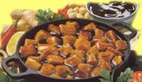 de suiker in een pan niet te donkerbruin, voeg er 2